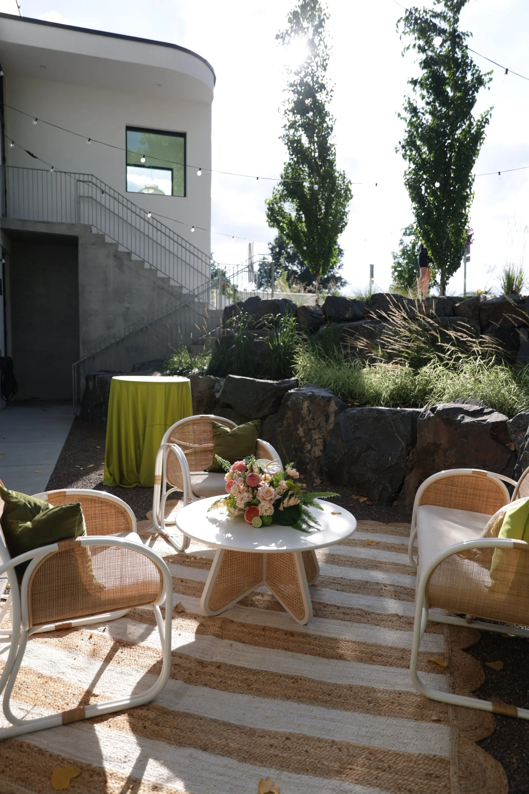 An outdoor patio and terrace for fresh air and informal gathering
